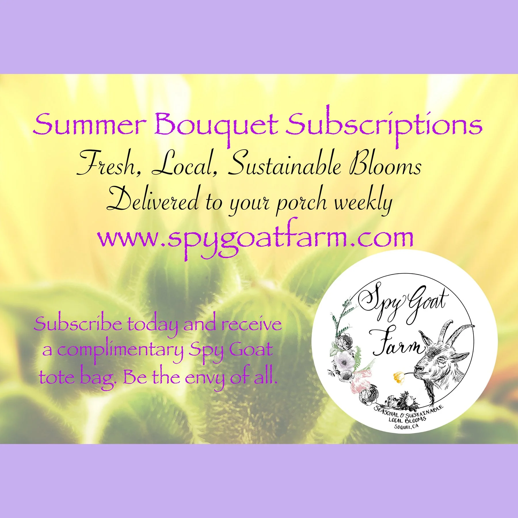 Pre-order to pick up at Outside-In (located in Aptos) and skip the delivery charge. Pick up times are between 10 am - 2 pm on Saturday, May 9. Order by May 5th (11:59 pm)
